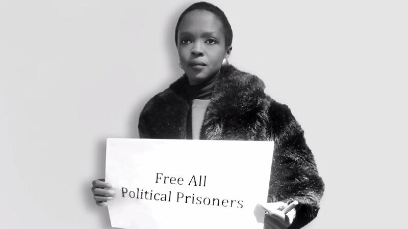 Although Lauryn doesn't speak in the video, a photo of her appears holding a sign that says "free all political prisoners."