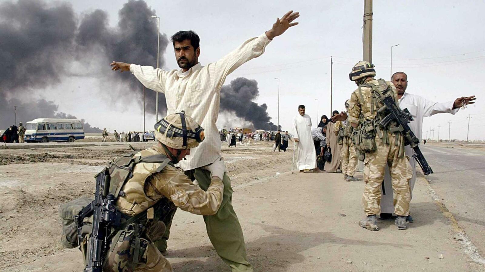 British occupying forces search men men Basra, Iraq in March 2003 (AFP/FILE)