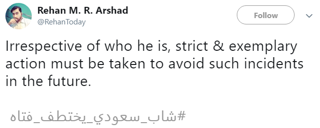 While there is still no official comment from the Saudi government, social media users went to raise calls to find this man and set him an example for the Saudi man.