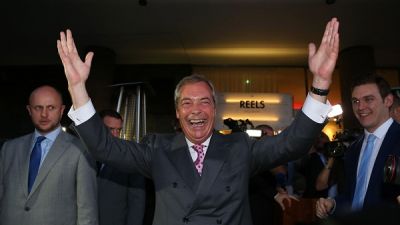 UK Independence Party leader Nigel Farage celebrates Brexit's success this morning (AFP)