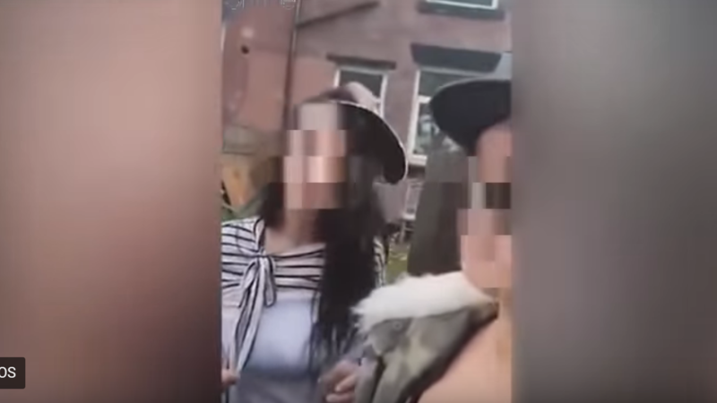 Shocking video has been circulating on social media shows two British women videotaping themselves while pouring alcohol and throwing bacon in front of a mosque in Oldham, England.