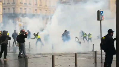 5- The Yellow Vest protests were marching across the streets of Bordeaux and videos documenting moments when protesters clashed with police were shared on Twitter.