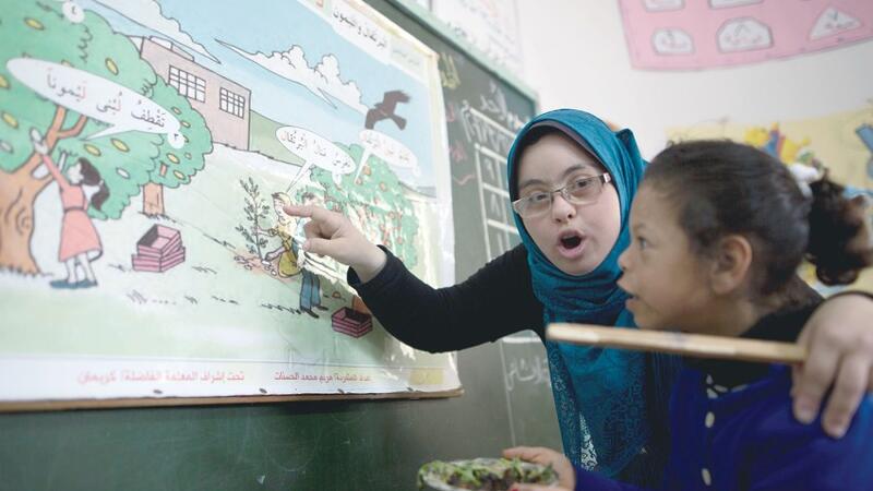 Hiba Al Sharfa has become the Gaza Strip’s first teacher with Down’s Syndrome, after a lifelong effort to achieve the dream.