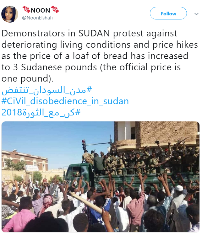 Sudanese protesting the prices increase and demanding government dismissal. (Socialmedia)
