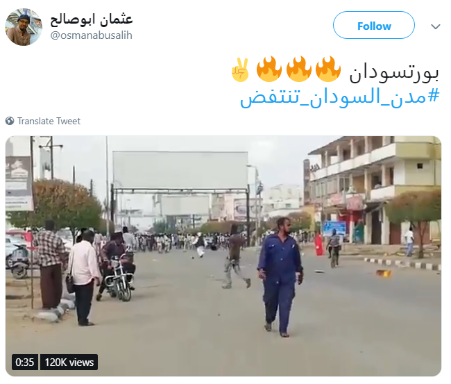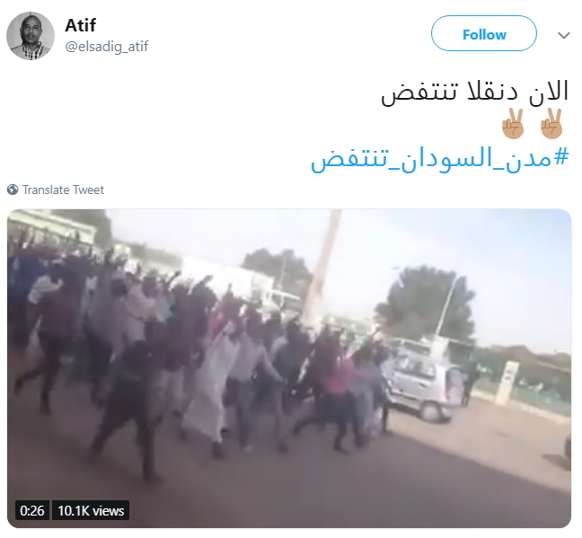 Hashtag مدن السودان تنتفض [Sudan cities uprising] went viral among social media users late on Wednesday leading it to the  worldwide trends list with hundreds of thousands of tweets.
