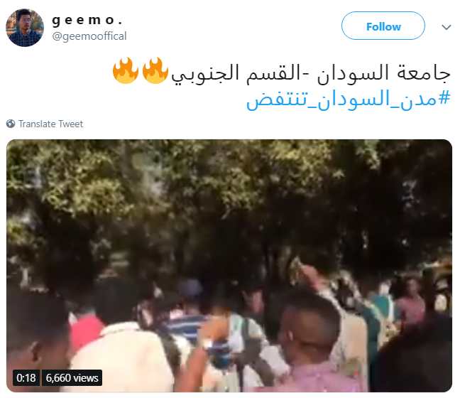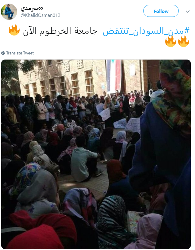 Also, videos for dozens protesting in Sudan University were widely shared.