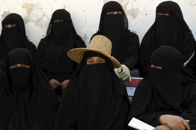 Women attend a demonstration on March 20, 2016 in Sanaa to show solidarity with the Taez governorate, where fighting had raged since the day before as rebel forces attempted to retake parts of the country's third-largest city from government loyalists.  (Mohammed Huwais)