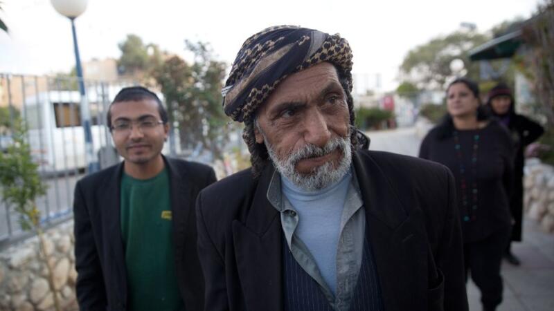 A Jewish Yemeni man arrives in Israel on March 21, 2016 after a covert operation that evacuated a group of 19 Yemeni Jews from their home country.  The group of 19 were amongst the last remaining members of Yemen's ancient Jewish community, and now it is estimated that only 40-50 Jews remain.  (AFP/Menahem Kahana)
