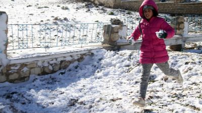 A girl plays in the snow in Tunisia's central Siliana region on January 16, 2017 (Faouzi Dridi/AFP)