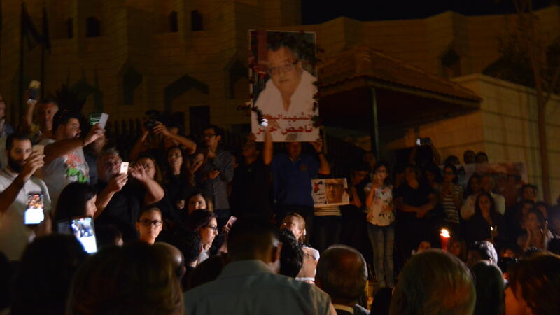Mourners mark the death of Nahed Hattar on Monday night (Al Bawaba)
