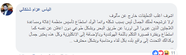 Translation: “I see most comments are irrelevant. First of all, his nomination for the pageant was not because of his look, but because of his effort to establish an organization that helps refugees who crossed Europe from the Middle East without talking about it. Also he was able to speak the Dutch language is a very short period of time in addition to the English. On top of all of this, his love for his country and talking about it in every occasion and interview.”