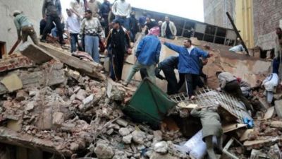 In the Nile Delta city of Tanta, a child died and nine people were wounded when a five-storey residential building came down on Sunday, leaving one person trapped under the rubble.