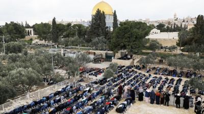 The worshippers, led by the Grand Mufti of Jerusalem, Sheikh Mohammad Hussein and other religious leaders, forced their way into the area ahead of the weekly Friday prayer, defying the Israeli ban.