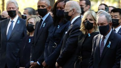 Biden joins Obamas and Clintons during 9/11 memorial moments of silence / POOL/AFP via Getty Images