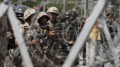 Soldiers of the Egyptian Army stand guard in front of the headquarters of the Egyptian Republican Guard in Nasr City on July 5, 2013 in Cairo, Egypt.  (Photo by Ed Giles/Getty Images).