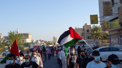 Several anti-Israel rallies took place across Bahrain to reject the opening of an Israeli embassy in Manama and express continued solidarity with the Palestinian cause. (Photo by Mazen Mahdi / AFP)