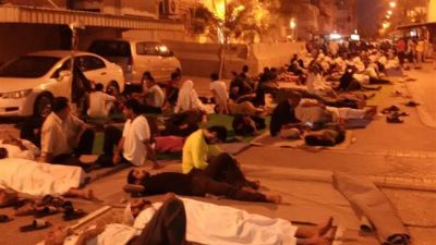 A picture tweeted by Bahrain's human rights activist Nabeel Rajab on Tuesday showed protesters sleeping outside the home in the village of Diraz near the capital Manama.