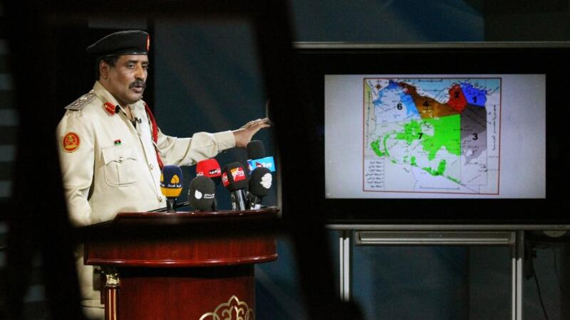 Ahmed al-Mesmari, a spokesman of Libya's opposition armed forces which are made up of militias and some units of the national army based in the east of the country, speaks during a press conference on June 2, 2017, in the coastal city of Benghazi. (Abdullah Doma/AFP)