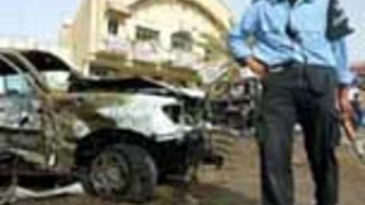 A suicide car bomber killed at least five people and wounded 15 in an attack on an Iraqi police headquarters in the northern town of Tikrit on Sunday, police sources said.