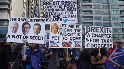 At the same time as the People's Vote rally, about 1,200 rallied at a pro-Brexit rally in Harrogate, a town in North Yorkshire, England. The event was organized by Leave Means Leave and led by former U.K. Independence Party leader Nigel Farage, who said the government should move forward with the vote.