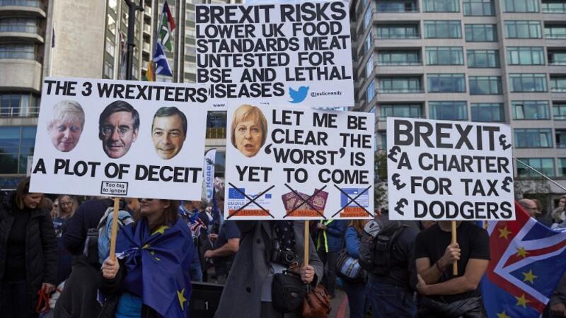 Demonstrators at the People's Vote March for the Future are demanding a referendum on the terms of the Britain's exit from the European Union next year. The rally attendees included lawmakers who support a new vote, something Prime Minister Theresa May said would not happen.