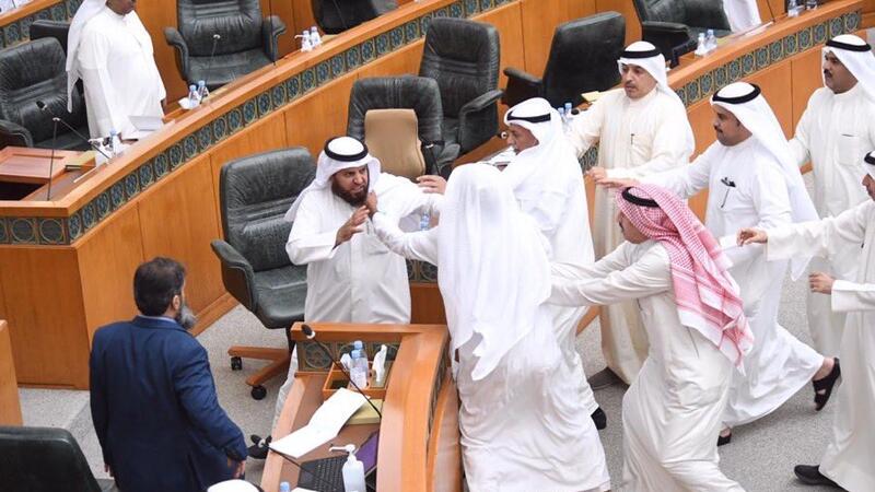 #Kuwait : Scuffles break out in parliament after vote on budget - opposition MPs had again occupied seats of ministers as form of protest #الكويت pic.twitter.com/TejgHYy3n0