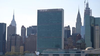 In this file photo a New York Police Department boat is seen on the East River in front of the UN headquarters building in downtown Manhattan on 2019 in New York City. At the normally busy headquarters of the United Nations in New York, life is suddenly moving at slow speed -- very slow speed. Johannes EISELE / AFP