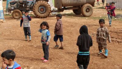 Syrian children play at a refugee camp on the outskirts of the eastern Lebanese city of Baalbek on February 24, 2015. (AFP/File)