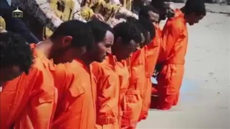 In a statement read by one of the militants, the victims, dressed in orange and black, were described as "followers of the cross from the enemy Ethiopian Church,” who neither pay a compulsory religious tax nor convert to what extremists call Islam.