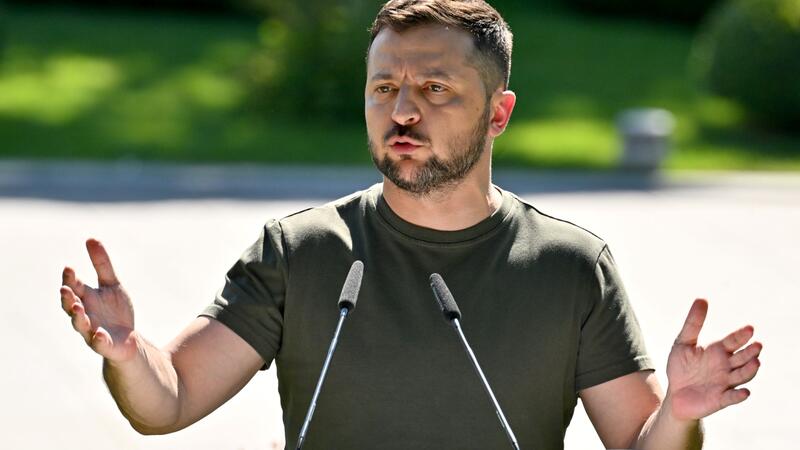 Ukrainian President Volodymyr Zelensky delivers a statement during a joint press conference with Lithuanian President Gitanas Nauseda, following their meeting in Kyiv on July 28, 2022. (Photo by Sergei SUPINSKY / AFP)