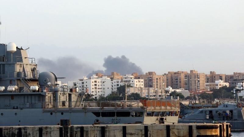 Smoke rises in the center of the Libyan capital of Tripoli after the clashes on May 26, 2017. (Mahmud Turkia/AFP)