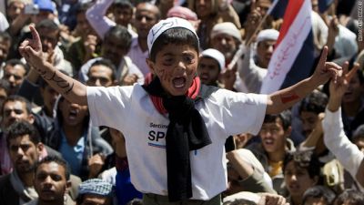 Protesters held banners calling on the legitimate government and the Saudi- led coalition supporting it to quickly complete the liberation of the province and implement the agreements on Houthi militias’ withdrawal from Hodeidah province.