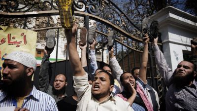 Protestors chanted against Iran and adherents of Shia Islam, the second largest sect of Islam. “Egypt will not become Shia, oh ambassador of Iran,” and “Listen, Muslim Brotherhood, we do not want relations with Iran,” were amongst the prevalent chants.