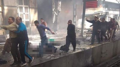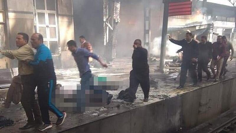 The fire is said to have been triggered by an exploding fuel tank on a speeding train that was heading into Ramses station in the centre of Cairo.