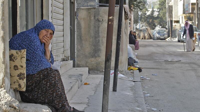 Palestinian refugee Zainab, aged 78, looks on in a street of the Baqa'a Palestinian refugee camp, near Amman, on 2 september 2018. AFP / AHMAD ABDO