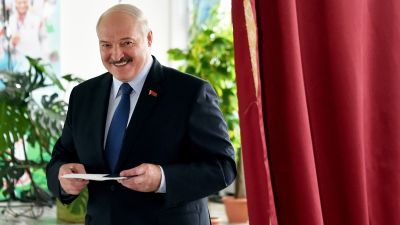 Belarus' President Alexander Lukashenko votes at a polling station during the presidential election in Minsk on Sunday. Photo: AFP
