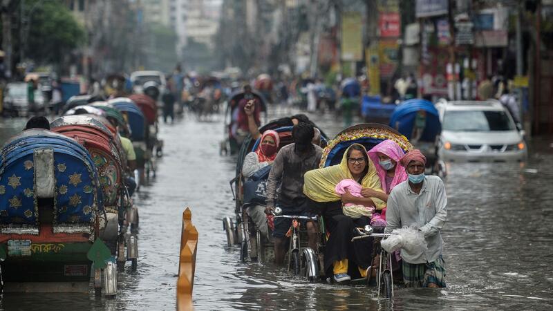 Floods in Bangladesh during the monsoon season are common due to heavy rain and upstream water from neighboring India.