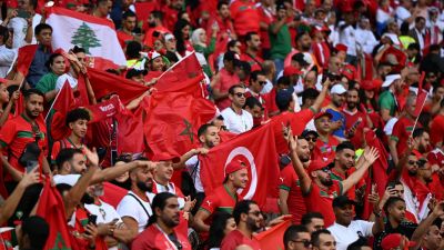 Fans of Morocco cheer on the stands during the Qatar 2022 World Cup Group F football match between Morocco and Croatia at the Al-Bayt Stadium in Al Khor, north of Doha on November 23, 2022. (Photo by OZAN KOSE / AFP)
