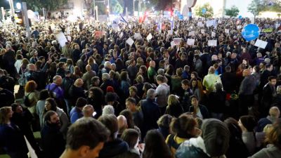 25,000 people reportedly met in Rothschild Boulevard to protest Netanyahu with placards that say "No to Corruption," "Not leftist, not rightist, we are honest," "Get out Netanyahu."