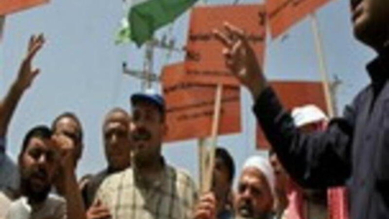 In Nablus, some 2,000 frustrated government employees, armed Palestinian police among them, held up photographs of late Palestinian leader Yasser Arafat and his successor Mahmud Abbas, chanting "We want our wages, not promises."