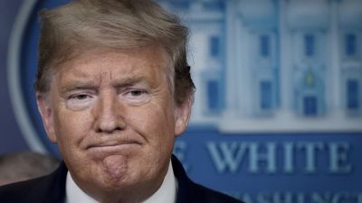 U.S. President Donald Trump pauses while speaking during a briefing on the coronavirus pandemic, in the press briefing room of the White House on March 24, 2020 in Washington, DC. Cases of COVID-19 continue to rise in the United States, with New York's case count doubling every three days according to Governor Andrew Cuomo. Drew Angerer/Getty Images/AFP Drew Angerer / GETTY IMAGES NORTH AMERICA / Getty Images via AFP