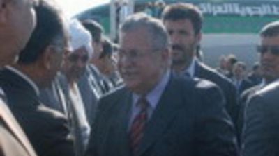 Iraqi President Jalal Talabani arrived in Tehran on Monday at the head of a high-ranking political and economic delegation for an official visit. This is the first visit by Iraqi president in Iran since the end of the 1960s. Talabani was welcomed by Iran's Minister of Industries and Mines Ali-Reza Tahmasbi at Tehran International Mehrabad Airport, IRNA reported.