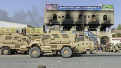 An armoured vehicles for Yemeni forces are seen in the outskirts of Al-Hudaydah on 8 November. (AFP/File)