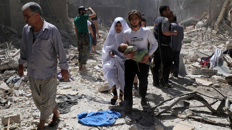 Regime helicopters dropped chlorine bombs on rebel-held eastern Aleppo between November 17 to December 13, killing at least nine people, including four children.