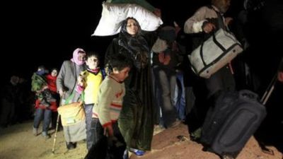 In darkness, Syrian refugees stream across country borders. [Reuters]