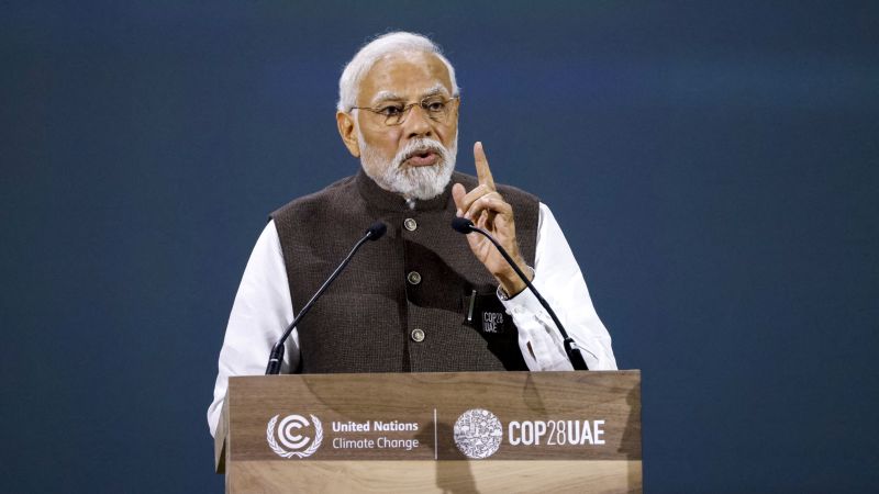 India Prime Minister Narendra Modi speaks during the Transforming Climate Finance session at the United Nations climate summit in Dubai on December 1, 2023. (Photo by Ludovic MARIN / AFP)