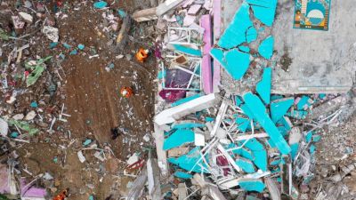 Several buildings were severely damaged, including the office of the West Sulawesi governor, Mamuju Hospital and a minimarket.