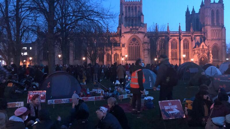 People camp out in Bristol to protest anti-trespassing legislation (Twitter)