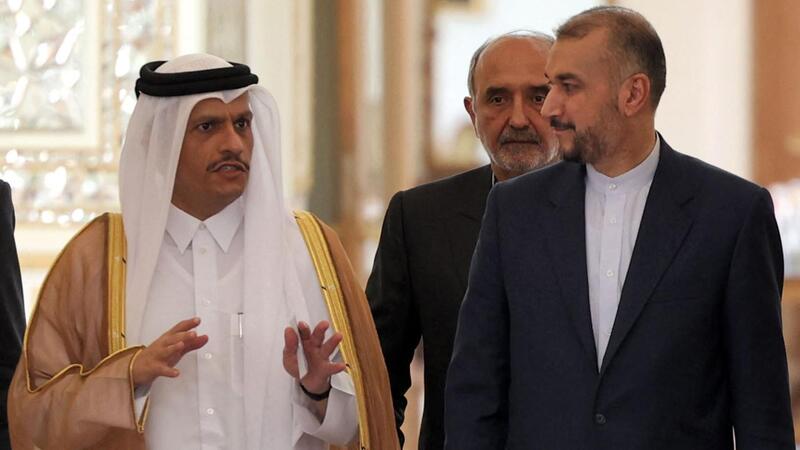 (File Photo): Right to left: Iran's Foreign Minister Hossein Amir-Abdollahian and Qatar's Foreign Minister Mohammed bin Abdulrahman Al-Thani arrive for a press conference in Tehran, on 7 July 2022 (AFP)