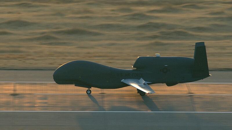 The drone soars to over 50,000ft, can be operated from 9,400 miles away and is loaded with optical/infrared sensors - it is believed to be the first time one has been taken out.